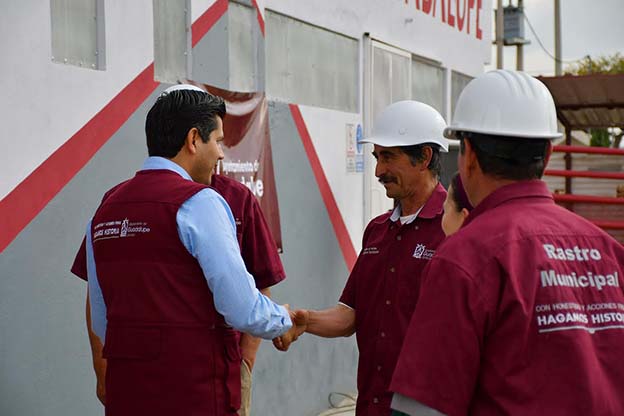 Durante la entrega, Julio César Chávez, exhortó a los trabajadores del rastro a ofrecer un servicio amable a los usuarios, al tiempo que entregó equipo de trabajo y posteriormente realizó un recorrido de verificación en las instalaciones del lugar.