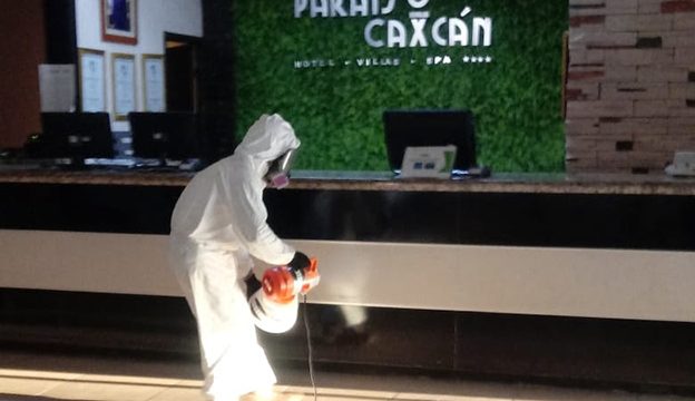 Desinfectan instalaciones de Paraíso Caxcán