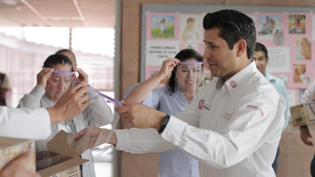 En este hospital, además de los protectores faciales, el alcalde de Guadalupe entregó también cajas de toallas alcoholadas, “este material lo teníamos desde antes y por la contingencia nos dimos prisa a entregarlo en los 9 centros de salud de Guadalupe, así como en las clínicas del IMSS, ISSSTE y UNEME”.