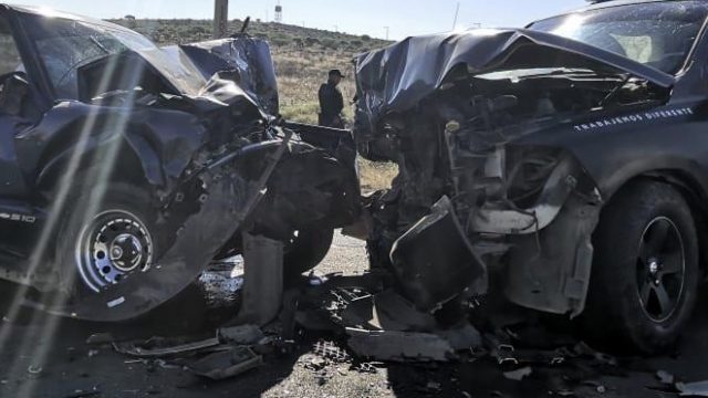 Zacatecas, Zac.-Una mujer de avanzada edad sin vida, un sexagenario lesionado y cuatro elementos de la Policía Metropolitana heridos es el saldo de un fuerte accidente automovilístico registrado este viernes alrededor de las 9:30 horas en el tramo carretero que va de Santa Mónica a Zóquite, en Guadalupe.