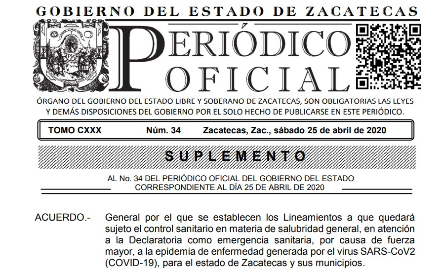 Gobierno del Estado invita a la ciudadanía a visitar el sitio en Internet http://periodico.zacatecas.