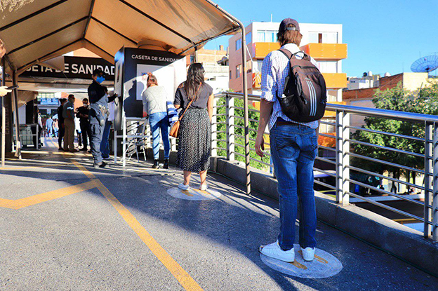 Zacatecas, Zac.- El puente peatonal de la Plaza Bicentenario es uno de los puntos de mayor afluencia de personas en la zona metropolitana de Zacatecas, por ello, de manera estratégica durante la contingencia por COVID-19 el alcalde capitalino Ulises Mejía Haro ha instalado una caseta de sanidad en el lugar, con la finalidad de reforzar las medidas preventivas y de promoción de la salud en la Capital.