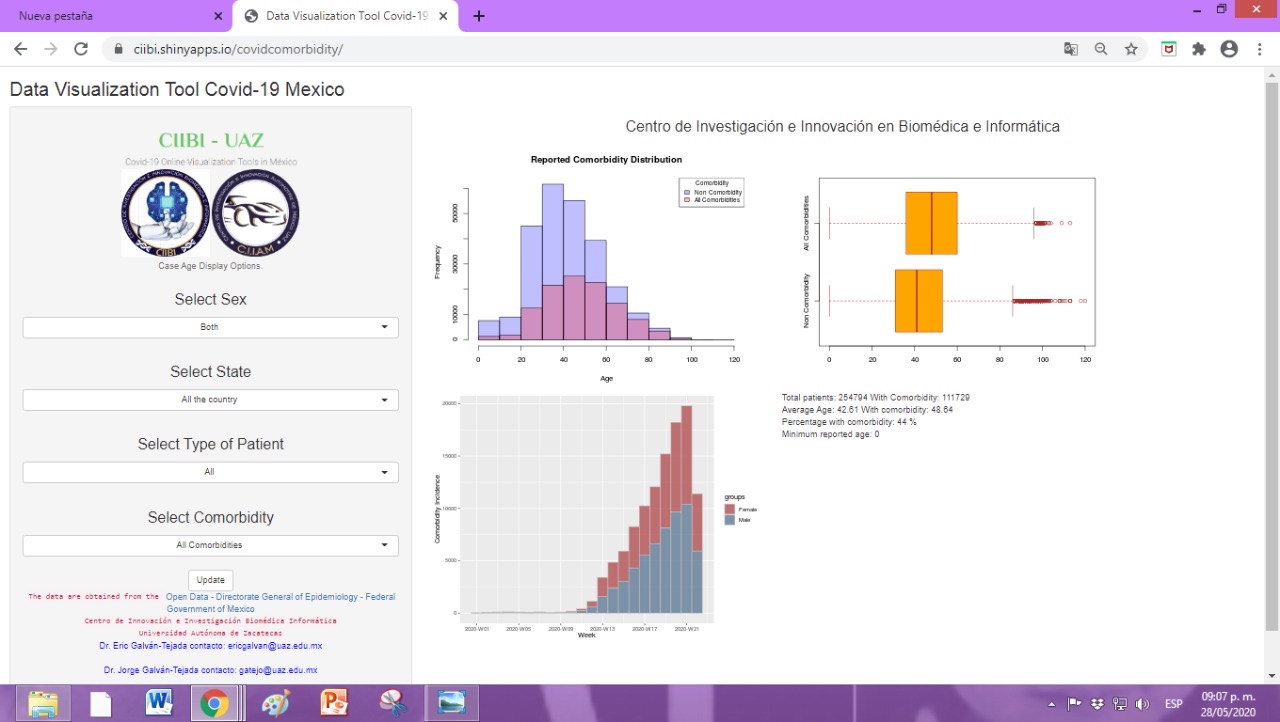 Además, por el lado de la investigación, especialistas de distintos ámbitos podrán hacer uso de los datos proporcionados para efectuar análisis de comorbilidades o de otro tipo de naturaleza. “Para la divulgación y el conocimiento público, como para el área de investigación, dichos enfoques pueden ser utilizados para artículos científicos, en Biomédica por ejemplo, se tiene un artículo en revisión sobre esta aplicación para una revista internacional, asimismo, se pueden realizar estudios sobre el impacto de las comorbilidades en desarrollos digitales, o sobre cómo el virus ha impactado más en hombres que en mujeres por cuestiones físicas. Es decir, desde las gráficas, se pueden extraer elementos que pueden ser importantes para su estudio”, subrayó Galván Tejada.