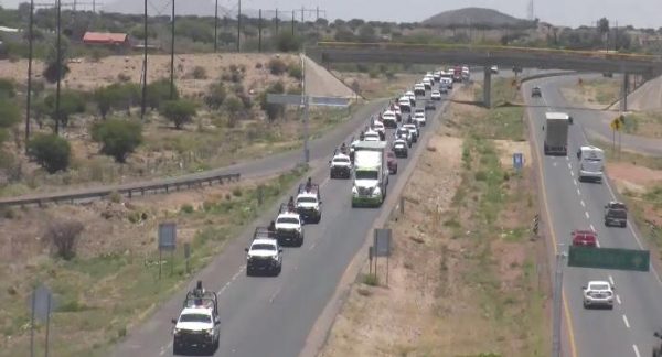 El convoy fue escoltado por elementos de la policía de vialidad, incluso el bulevar López Mateos, fue cerrado el carril con dirección hacia Fresnillo.