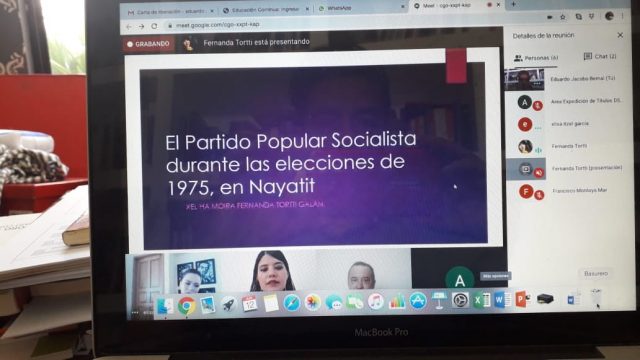 El examen efectuado mediante una plataforma de videoconferencias, estuvo coordinado entre el Departamento Escolar y la misma unidad académica con el objetivo de certificar y dar seguimiento el acto protocolario, ahí, la sustentante  Xel ha Moira Fernanda Tortti Galán tuvo la oportunidad de presentar su trabajo de tesis titulado  «Partido Popular Socialista durante las elecciones de 1975, en Nayarit».