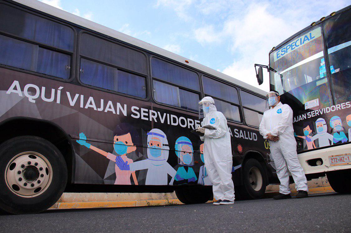 Fue en el Hospital General de Zacatecas donde el primer edil acompañado de las autoridades de salud en el sector público y privado presentaron las unidades rotuladas con la leyenda «Aquí viajan servidores de la salud», con capacidad para 20 personas en cumplimiento a la Sana Distancia contando además con un filtro sanitario que previo a abordar toma la temperatura, distribuye gel alcoholado y cubrebocas en caso de no portarlo.