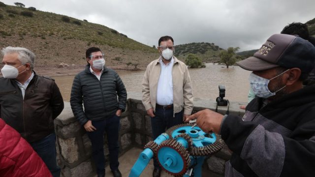 Además de modernizar dos zonas de riego, las de las presas El Ahijadero y San Martín Tecolotes, y entregar la Presa en Huertas del Mezquite, en Pinos se construyeron siete bordos de abrevadero en Jaula de Arriba, La Jabonera, Las Pilas, San Andrés, Ahijaderos, San Blas y Santa Gertrudis, así como dos líneas de conducción, en Huertas de Mezquite y José María Pino Suárez.