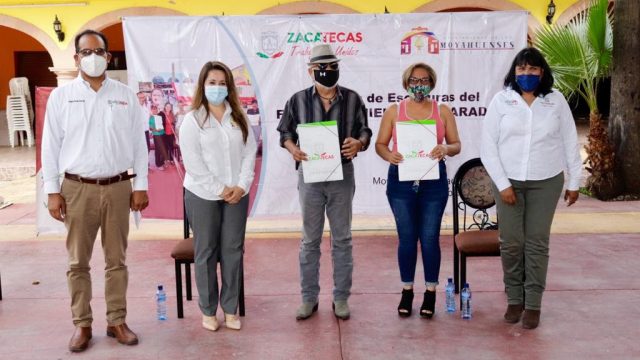 Moyahua, Zac.- El Gobierno del Alejandro Tello, en coordinación con la administración de Moyahua que encabeza Norma Castañeda, otorgó certeza jurídica de 130 de predios del fraccionamiento El Parador, en beneficio del mismo número de familias y con una inversión superior a los 490 mil pesos.
