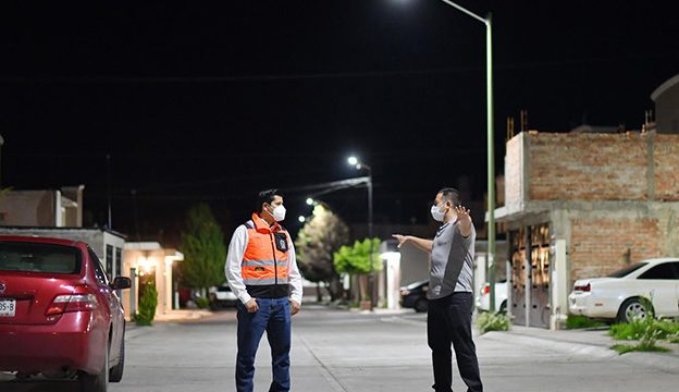 Zacatecas, Zac.- Decidido a entregar todos y cada uno de los circuitos del nuevo y transformado alumbrado público en el municipio de Guadalupe, el alcalde, Julio César Chávez Padilla, recientemente visitó la segunda sección de Villa Fontana, así como el Fraccionamiento San Ramón y La Comarca.