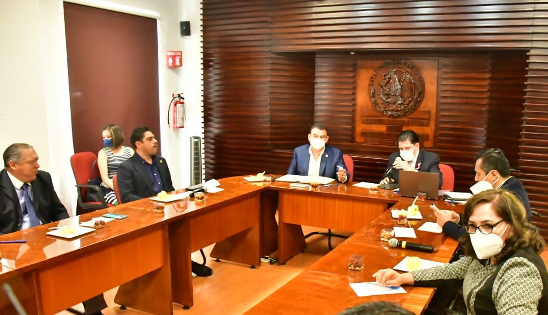 En su intervención inicial, el secretario de Administración Víctor Rentería López habló de las medidas que se tomaron al interior del gobierno para reducir la presencia de trabajadores en las oficinas gubernamentales durante la emergencia sanitaria.