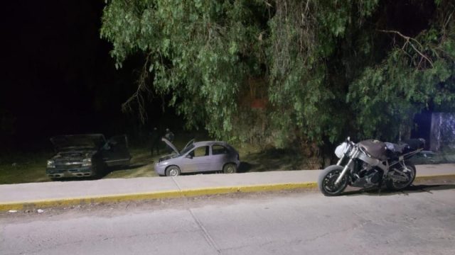 Además, un vehículo tipo sedán marca Chevrolet, línea Chevy, modelo 2003, sin placas de circulación, en su interior se localizaron nueve bolsas pequeñas tipo ziploc que contenían sustancia granulada con las características de la probable droga conocida como cristal.
