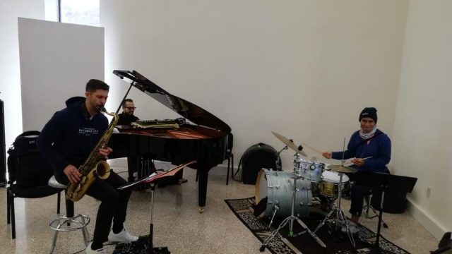 Zacatecas, Zac.- El multiinstrumentista mexicano Adrián Terrazas, acompañado de Andrés Márquez, en la batería, y Roberto Verástegui, en el piano, ofreció una master class de forma virtual, como parte del programa de actividades académicas del 13º Festival Internacional de Jazz y Blues 2020.
