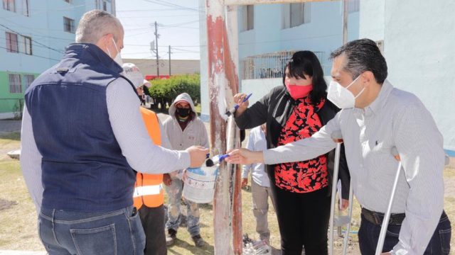 Para mejorar las condiciones de las viviendas del fraccionamiento, entregaron 57 paquetes de material del programa Mejoramiento a la Vivienda, para que las familias puedan colocar techos de losa, muros y pisos firmes; así como cubetas con pintura, con valor superior a 111 mil pesos.