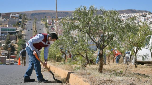 Zacatecas, Zac.- El alcalde de Guadalupe, Julio César Chávez, supervisó las acciones de limpieza y deshierbe en los camellones centrales y laterales de la vialidad San Simón.