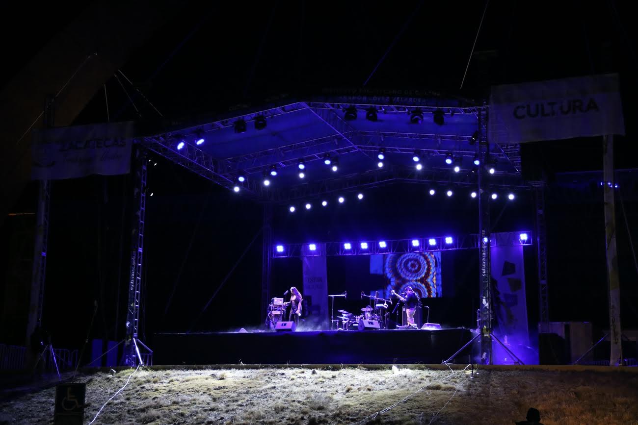 Posterior a su concierto, que fue ovacionado con los claxons de los automóviles del público que se dio cita esta tarde-noche, subieron al escenario los también zacatecanos de Apzu Cosmic Jazz, con su concierto “Black and blue sky”.