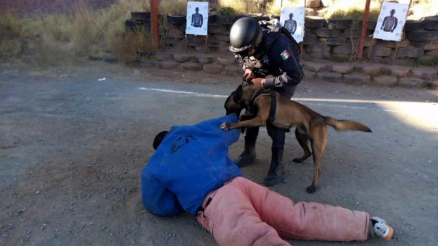 Zacatecas, Zac.- En cumplimiento a los enfoques de la Estrategia de Seguridad Pública Integral para Zacatecas (ESPIZ), mediante la cual la Secretaría de Seguridad Pública (SSP) fortalece la profesionalización de las corporaciones policiales que actúan en el territorio zacatecano, se capacita a los elementos y sus respectivos ejemplares caninos adscritos a la Unidad Canina (K-9), en materia de Técnicas y Tácticas Policiales de Intervenciones de Alto Riesgo.