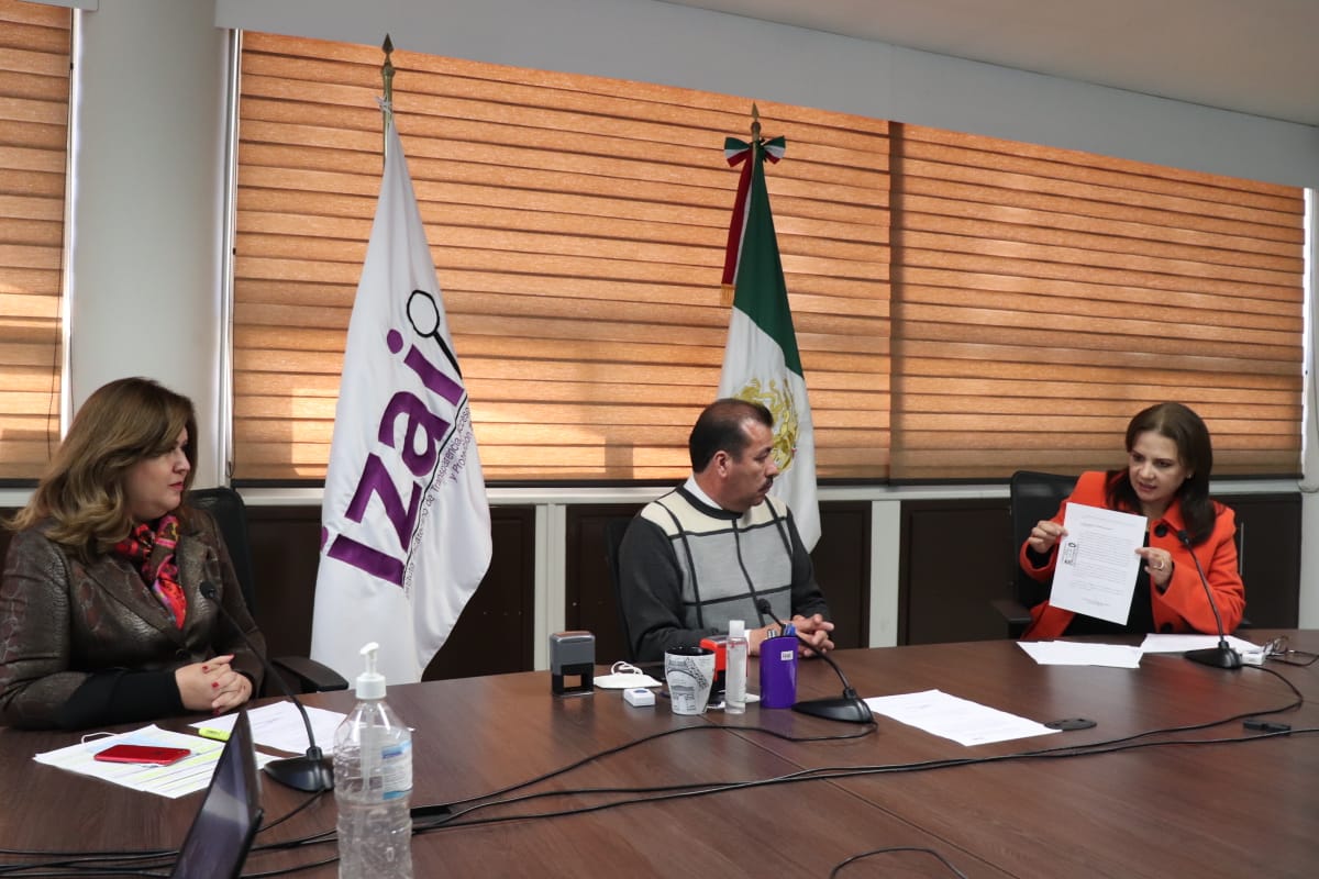 Posteriormente, con la asistencia virtual de unidades de transparencia, oficiales de protección de datos personales, integrantes del Sistema Nacional de Transparencia y personal del IZAI, se llevó a cabo una sesión solemne de reconocimiento a la Comisionada, la cual fue transmitida por redes sociales institucionales.