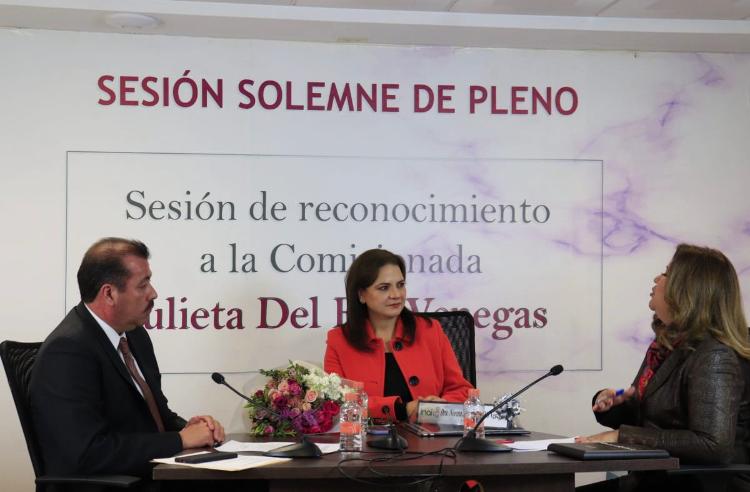 Del Río Venegas agradeció el acompañamiento del Comisionado Presidente Samuel Montoya Álvarez y la Comisionada Fabiola Torres Rodríguez, a quienes reconoció como un pleno armónico y un equipo fuerte.