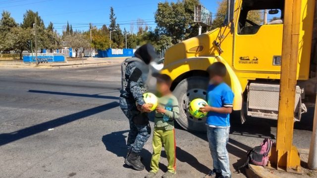 En el marco de la Estrategia de Seguridad Pública Integral para Zacatecas (ESPIZ), los efectivos de la PEP atendieron las necesidades de esparcimiento y, ante el contexto que a nivel mundial se vive por la contingencia sanitaria, considere colonias vulnerables del municipio de Fresnillo, en donde repartieron balones a niños.