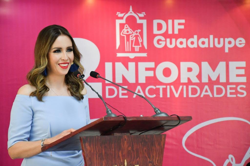 Zacatecas, Zac.-Acompañada del Presidente Municipal, Julio César Chávez Padilla, este jueves 26 de noviembre, la Presidenta Honorífica del DIF Guadalupe, Susy Solís, de manera virtual, rindió el segundo informe de actividades de la noble institución que representa con gran compromiso en beneficio de la población de Guadalupe, Zacatecas.