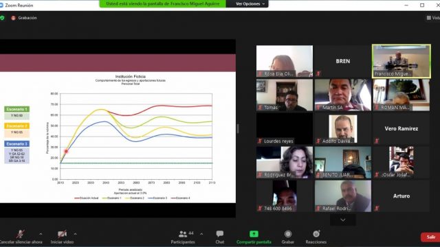 El actuario presentó detalladamente el resultado del Estudio Actuarial del Issstezac, con cifras al 31 de diciembre de 2019, enfatizando el déficit de 44 mil millones de pesos y dijo que con estos foros buscan socializar y sensibilizar a los miembros cotizantes activos sobre la situación financiera actual por la que atraviesa.