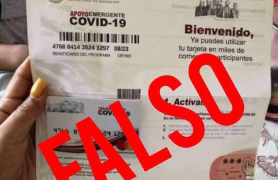 Zacatecas, Zac. -El Gobierno de México alerta a la población de Zacatecas por el presunto fraude mediante entrega de tarjetas falsas denominadas Apoyo por Covid-19, para cuya activación, los defraudadores piden depósitos de 300 pesos.