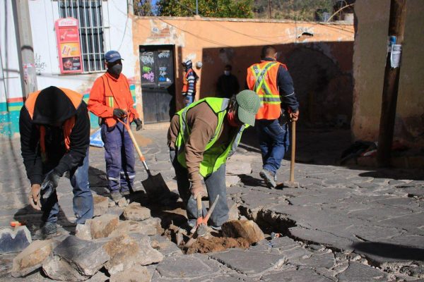 Zacatecas, Zac.- Dando puntual seguimiento a las demandas de servicios públicos en Zacatecas, el alcalde capitalino Ulises Mejía Haro supervisó la brigada de bacheo realizada en la calle Auxilio de la zona centro de la ciudad, con trabajos de adoquín irregular, reparaciones solicitadas por los vecinos del lugar.
