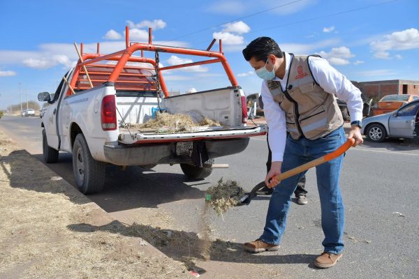 Zacatecas, Zac.- Con la firme decisión de mantener una ciudad de Guadalupe limpia y bonita, el alcalde, Julio César Chávez Padilla, encabezó una jornada de limpieza en la carretera a Sauceda de la Borda.