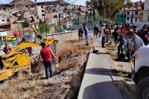 Zacatecas, Zac.- Durante la Jornada Voluntaria de Limpieza número 51 impulsada por el Ayuntamiento de Zacatecas, el alcalde capitalino Ulises Mejía Haro y su equipo de colaboradores visitaron la colonia Francisco E. García donde se desplegaron diferentes brigadas de mantenimiento integral, tales como barrido manual, deshierbe, pintura de guarniciones, recolección de basura, encalado y poda de árboles, contando además con maquinaria pesada para facilitar y agilizar el trabajo realizado sobre las principales calles de esta colonia, cuidando en todo momento los protocolos de prevención y promoción de la salud. Fue en la cancha conocida como «La Rosita» donde los vecinos del lugar acompañaron al primer edil en las diferentes labores de mejoramiento de su colonia, interviniendo las calles aledañas a este espacio público.
