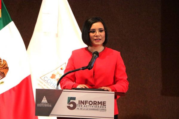Por lo que, a cinco años de ejercicio como presidenta de la Comisión de Derechos Humanos del Estado, Domínguez Campos expuso que ha trabajado de manera intensa, esforzada y comprometida a favor de la protección, defensa, promoción, observancia, estudio, investigación y divulgación de los derechos humanos, así como en desarrollo institucional.