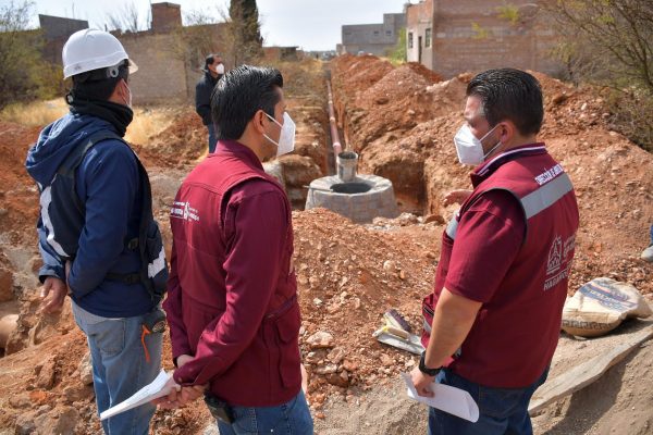 Zacatecas, Zac.- Con el compromiso de que los guadalupenses cuenten con servicios básicos en sus hogares, el alcalde, Julio César Chávez Padilla, supervisó la construcción de la red de drenaje en las calles Laureles, Sauces y Pinos del Fraccionamiento El Roble.