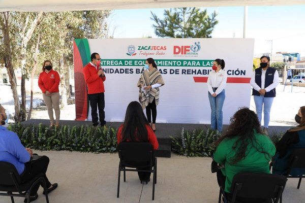 Cristina Rodríguez de Tello, Presidenta Honorífica del SEDIF, entregó materiales como electro-estimuladores, colchones, juegos de pelotas Bobath, caminadoras, pelotas Bossu, entre otros, a las UBR de Sombrerete, Sain Alto y Chalchihuites; mencionó la importancia de reforzar estos espacios ya que todas las personas podrían sufrir alguna discapacidad y necesitar terapia.