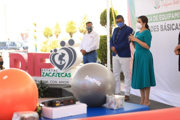 Río Grande, Zac.- Para atender adecuada y eficientemente a las personas con discapacidad, el Gobierno del Estado, a través del Sistema Estatal para el Desarrollo Integral de la Familia (SEDIF), apoya el trabajo de las Unidades Básicas de Rehabilitación (UBR) del territorio zacatecano y, este día, entregó equipo a las de los municipios de Miguel Auza, Juan Aldama, Francisco R. Murguía, Cañitas de Felipe Pescador y Río Grande.