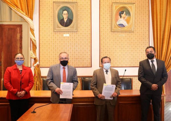 “Este convenio obedece a las reformas que incorporan y tipifican la violencia política a razón de género”, explicó el Magistrado Presidente, Arturo Nahle García, al signar junto con el Maestro Virgilio Rivera y en compañía del Magistrado Édgar López Pérez y Marisa Álvarez Crespo, Titular de la Unidad de Igualdad de Género y Derechos Humanos del Poder Judicial.