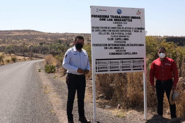 Nochistlán, Zac.- Con una inversión tripartita superior a los 11 millones 870 mil pesos a través del Programa 2×1 «Trabajando Unidos con los Migrantes», ejercicio fiscal 2020, se entregaron 16 obras en comunidades de los municipios de Nochistlán y Juchipila.
