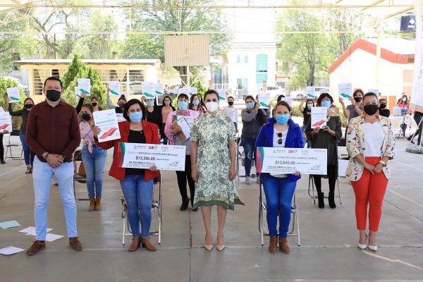 La titular del SEDIF entregó cheques a: Ofelia Covarrubias Ramírez, de la comunidad Mesa de Rayos, de Florencia de Benito Juárez; Cecilia Herrera Gómez, de la comunidad Aguajes de Arriba, de Tlaltenango; Alma Dolores Campos Campos, de la localidad Los Vela, de Momax; entre otras.
