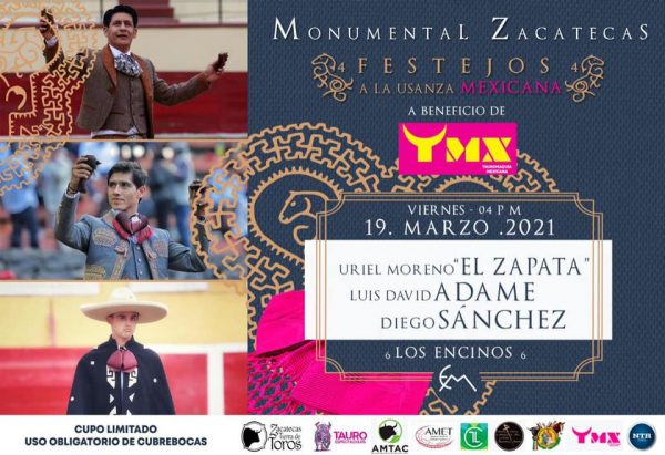 Las corridas de toros que habrán de celebrarse en la ciudad de Zacatecas se llevarán a cabo en la más estricta aplicación de los protocolos sanitarios que la pandemia nos ha impuesto. Se trata de un serial a beneficio de la asociaición Tauromaquia Mexicana, cuya labor se centra en la promoción y defensa de esta tradición.
