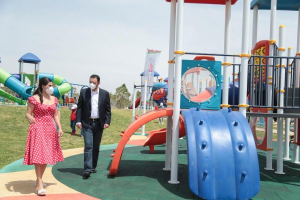 En compañía de Cristina Rodríguez de Tello, Presidenta Honorífica del Sistema Estatal para el Desarrollo Integral de la Familia (SEDIF), y de sus hijos, el Gobernador Alejandro Tello reconoció que este parque es una retribución al esfuerzo de las y los colaboradores, y para quienes asisten a realizar trámites.