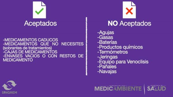Así, la población podrá deshacerse correctamente de los medicamentos caducos o no utilizados, que corresponden a tratamientos que no concluyeron o sobraron, con ello, evitan el riesgo de tenerlos en casa, desecharlos por inodoros y coladeras, lo que contamina el agua o tirarlos a la basura, lo cual contamina el subsuelo.