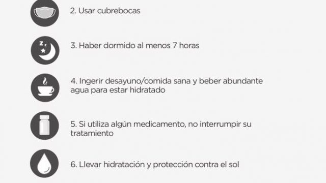 Así como: previamente, procurar dormir al menos siete horas; ingerir un desayuno/comida sana; mantener la hidratación; no dejar de tomar sus medicamentos si es que sigue algún tratamiento médico; llevar protección contra el sol; no está permitido el ingreso con cámara fotográfica o de video y el celular debe estar apagado.