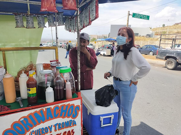 Zacatecas, zac.-Convencida de que los emprendedores y microempresarios de la capital, son el motor de la economía local, Flor García, candidata del Partido Movimiento Dignidad a la presidencia municipal de Zacatecas continúa su acercamiento por las colonias, barrios y comunidades de la capital, para llevar sus propuestas y soluciones a este sector, “vamos por el rescate de las y los comerciantes, pues ellos representan un aire de esperanza y dignidad para sacar a flote a miles de familias en nuestro municipio”.