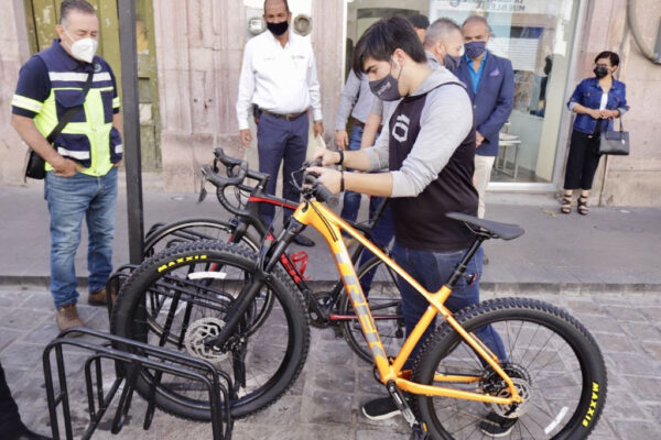 Zacatecas, Zac.- El Gobierno del Estado instaló estacionamientos para bicicletas en el centro de la capital zacatecana y en Guadalupe, en respuesta a la demanda de ciclistas que transitaban por el centro histórico, a fin de incentivar a la población a usar este medio de transporte y mejorar la movilidad en la zona metropolitana.