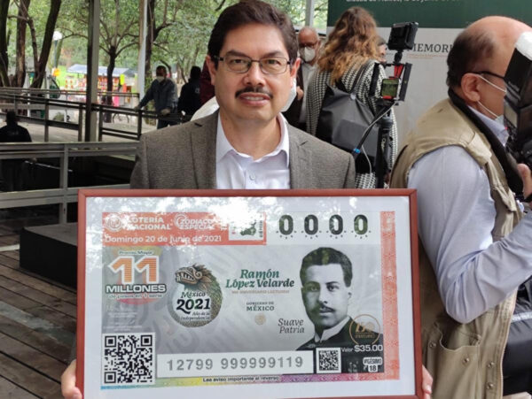 Ciudad de México.- Este domingo fue develado el billete de la Lotería Nacional, conmemorativo a los cien años de la muerte del poeta Ramón López Velarde; asimismo, se llevó a cabo la inauguración de la exposición fotográfica «100 años sin Ramón López Velarde».