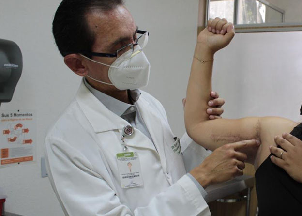 Para revertir el daño causado, los médicos del IMSS realizaron una exploración del plexo axilar donde encontraron seccionado el nervio radial a nivel de la axila e hicieron una reconstrucción nerviosa con microcirugía.