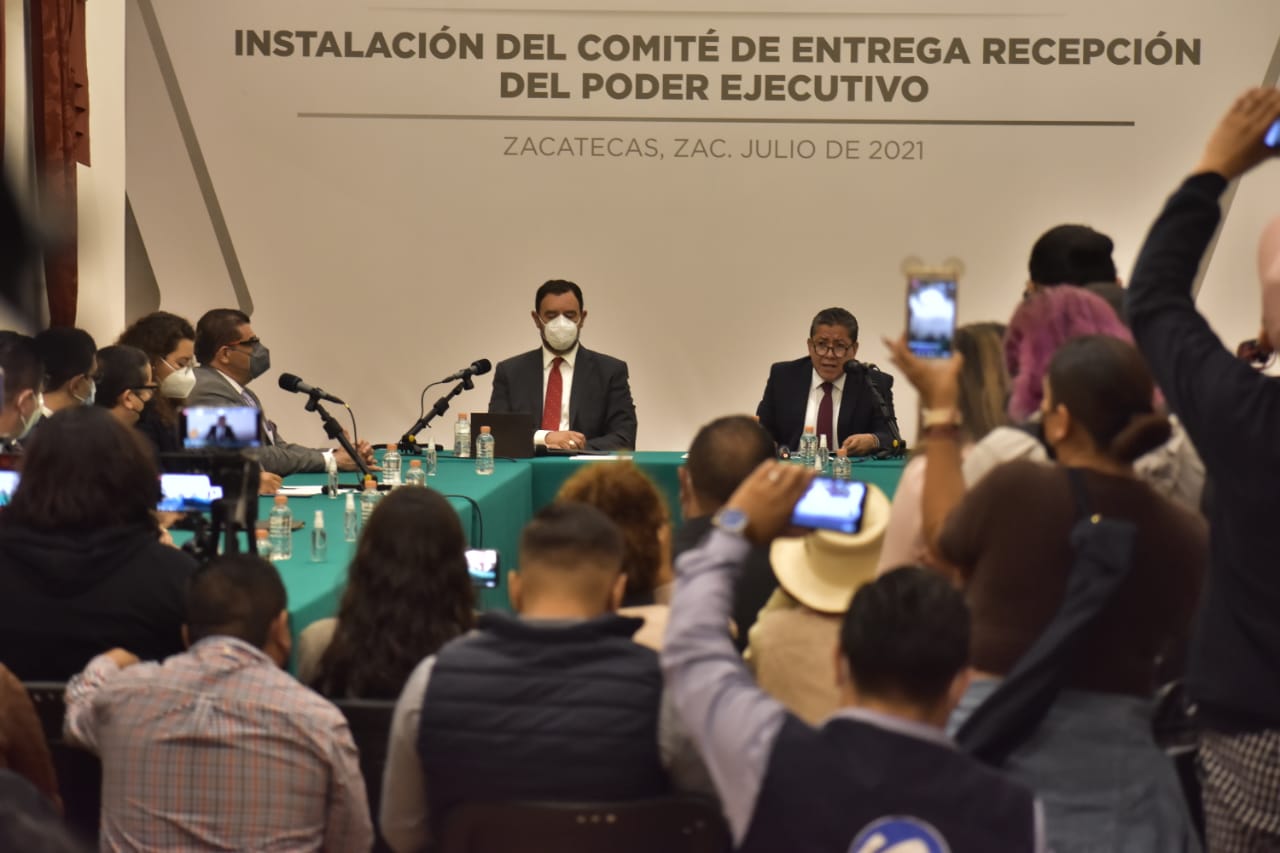 Por la administración en funciones, en el Comité de Entrega participan las secretarías General de Gobierno, Erik Fabián Muñoz Román; de la Función Pública (SFP), a cargo de Gabriela Alejandra Rodríguez Rodríguez; de Finanzas (Sefin), Ricardo Olivares Sánchez; de Administración (SAD), Juan Antonio Ruiz García; y de la Coordinación Jurídica, Federico Soto Acosta.