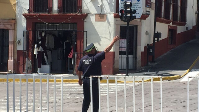Zacatecas, Zac.- Debido al hundimiento registrado sobre la calle Fernando Villalpando, la Dirección de Policía de Seguridad Vial determinó el cierre de la vialidad e implementó un operativo con la finalidad de salvaguardar la integridad de los peatones y conductores de vehículos.