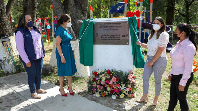 La titular del SEDIF inauguró este parque, en el que el Gobierno del Estado invirtió más de 500 mil pesos. Está ubicado en la avenida Benito Juárez de la cabecera municipal y tiene distintos tipos de juegos infantiles para niñas y niños con y sin discapacidad.