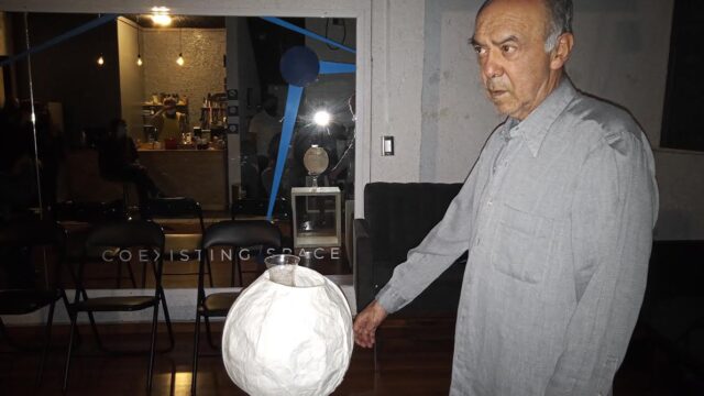 Visiblemente emocionado el actor, con su inseparable “Quinqué”, elemento importante en dicha representación pues el drama gira alrededor de la débil llama que apenas alumbra la penumbra, entre las fuertes y duras reflexiones que imprime la voz del actor.