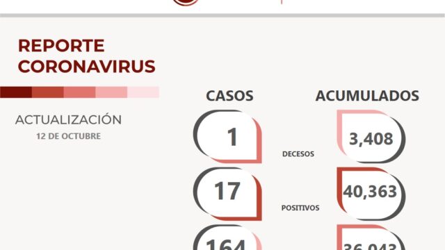 Asimismo, las autoridades estatales de salud contabilizaron 17 nuevos casos positivos y un fallecimiento por causa del SARS-CoV–2.