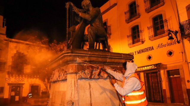 “Estamos con labores de limpieza, de reconstrucción de banquetas y por supuesto, también limpiando la estatua de este gran precursor zacatecano que fue vandalizada”, compartió el doctor Miranda Castro.